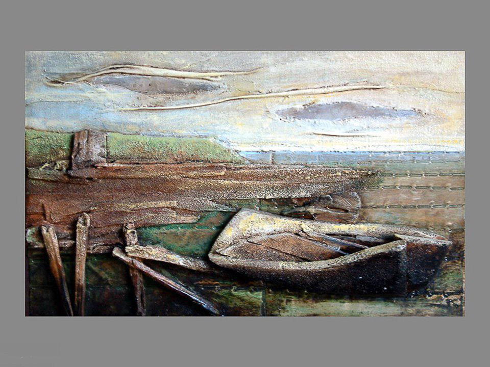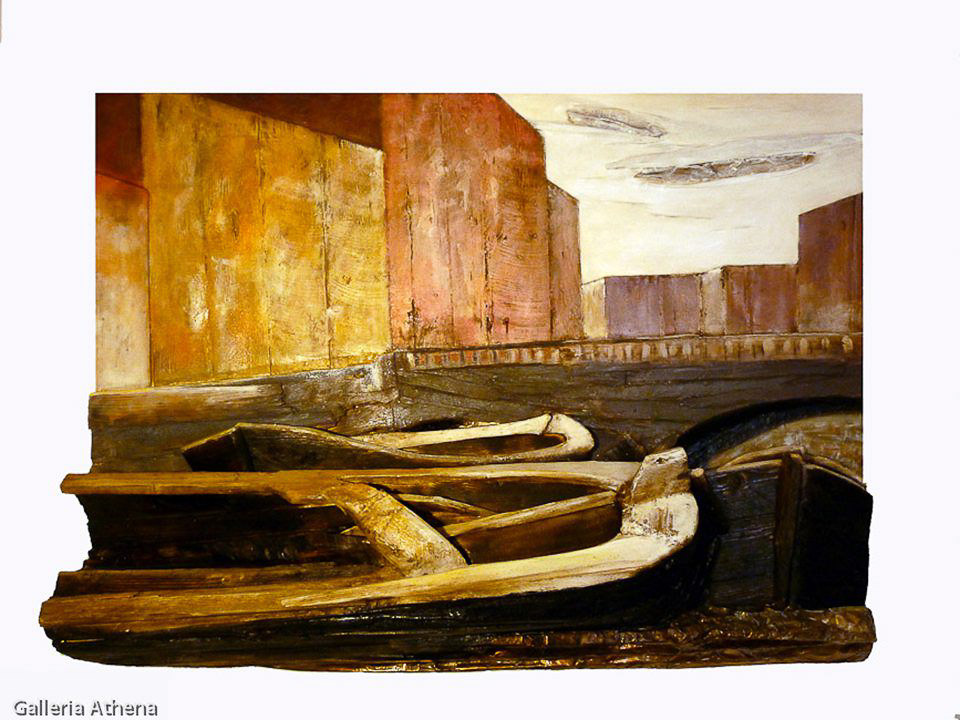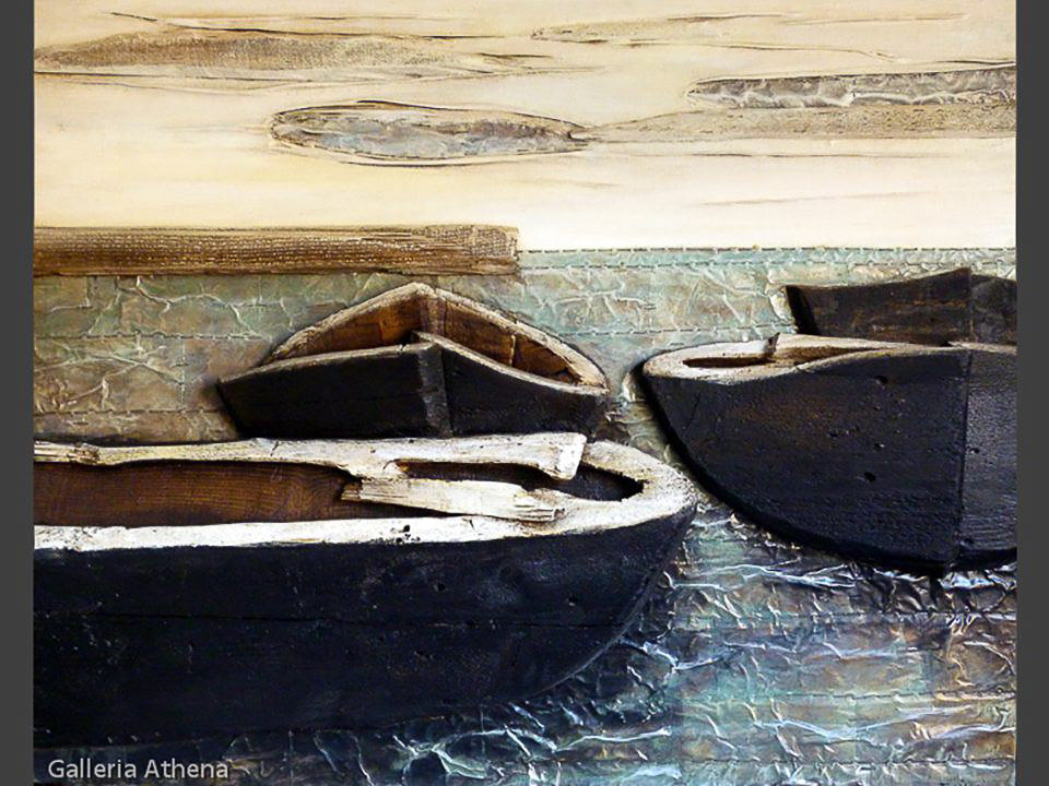 In con­clu­si­ne, se da un lato la tema­ti­ca dei bar­co­ni, pre­sen­ta­ta in que­sti due lavo­ri, può esse­re let­ta come ricor­do, assi­mi­la­zio­ne e rie­la­bo­ra­zio­ne di ele­men­ti per­si del­la nostra sto­ria di col­let­ti­vi­tà cit­ta­di­na, dal­l’al­tro assur­ge un signi­fi­ca­to archeo­ti­pi­co, ponen­do inter­ro­ga­ti­vi in colui che ne osser­va le for­me, che per mez­zo di un’im­bar­ca­zio­ne, può sol­ca­re i mari, pron­to per il lun­go viag­gio dell’esistenza.