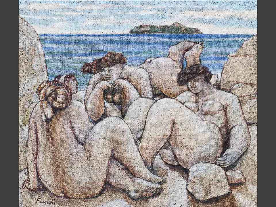 “Ogni orientamento scrive Hans Magnum Enzensberger presuppone disorientamento. Solo chi ha sperimentato lo smarrimento può liberarsene… Il labirinto è fatto perché chi vi entra si perda ed erri. Ma il labirinto costituisce pure una sfida al visitatore perché ne ricostruisca il piano e ne dissolva il potere. Se egli ci riesce, avrà distrutto il labirinto; non esiste labirinto per chi lo ha attraversato.”Franchi sembra aver attraversato il labirinto, aver compiuto, nei giardini fiesolani, con le numerose figure di donna che si guardano e dialogano tra loro, il suo personale viaggio nell’altro mondo, nel mare infinito, nel tempo senza tempo. Franchi ha, magicamente, dissolto la precarietà dell’età presente creando dei miti viventi ed eterni. Figure che si ripetono mutando costantemente, istante dopo istante, come i granelli di sabbia di un deserto, soltanto apparentemente uguali, in realtà, in continua evoluzione.